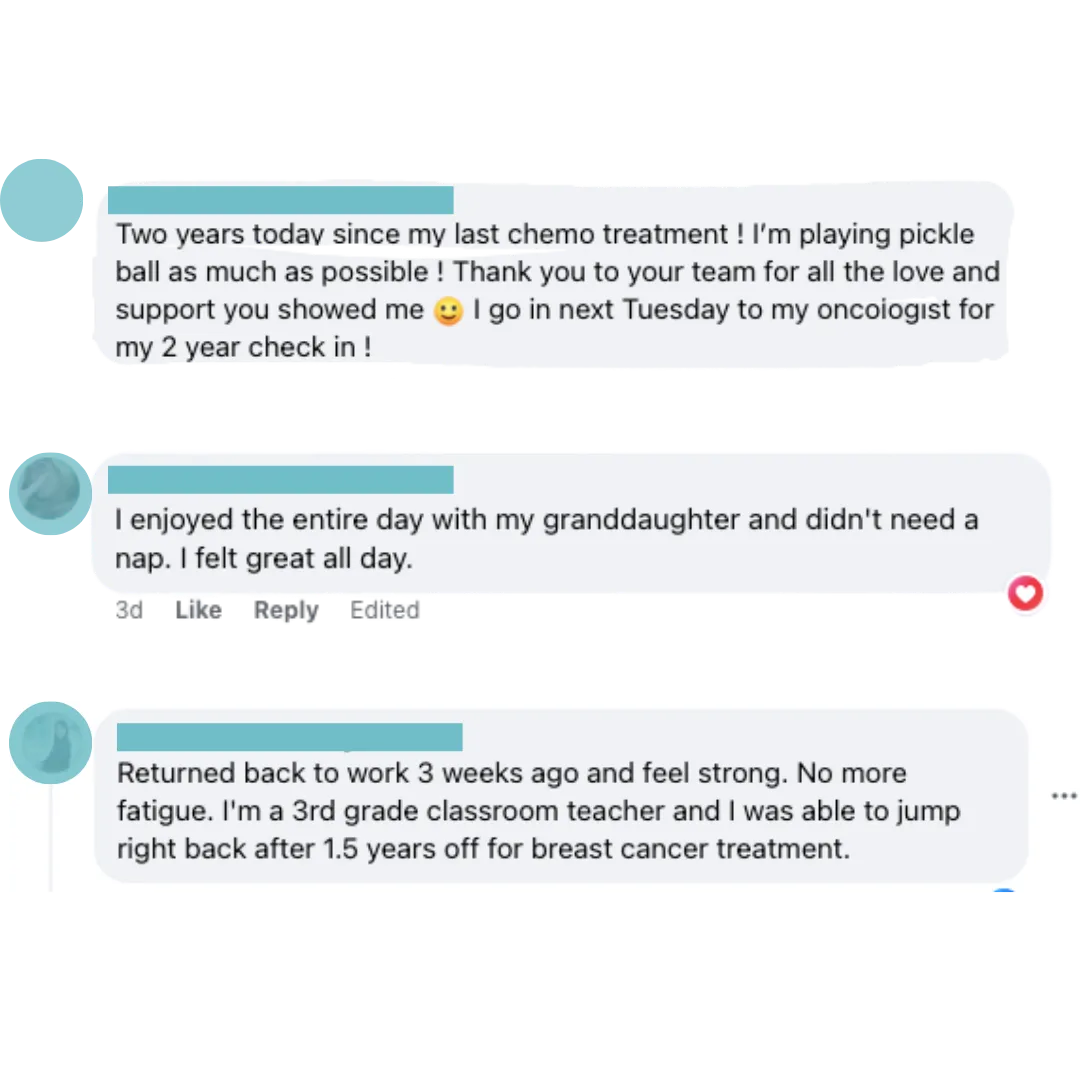 Wonderful! We’re happy to collaborate or complement the care you’re receiving. Most of our clients come to us because they want someone who truly understands the cancer recovery context.