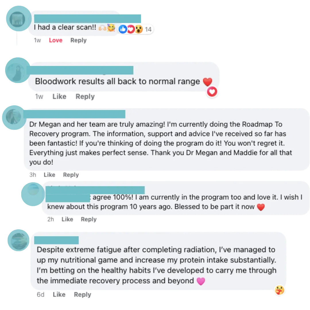 Join a supportive space with direct guidance where you can ask questions, share wins, and learn from others walking the same post-treatment path. These calls, typically hosted by Dr Megan or guest experts, offer guidance, accountability, and community all in one place.